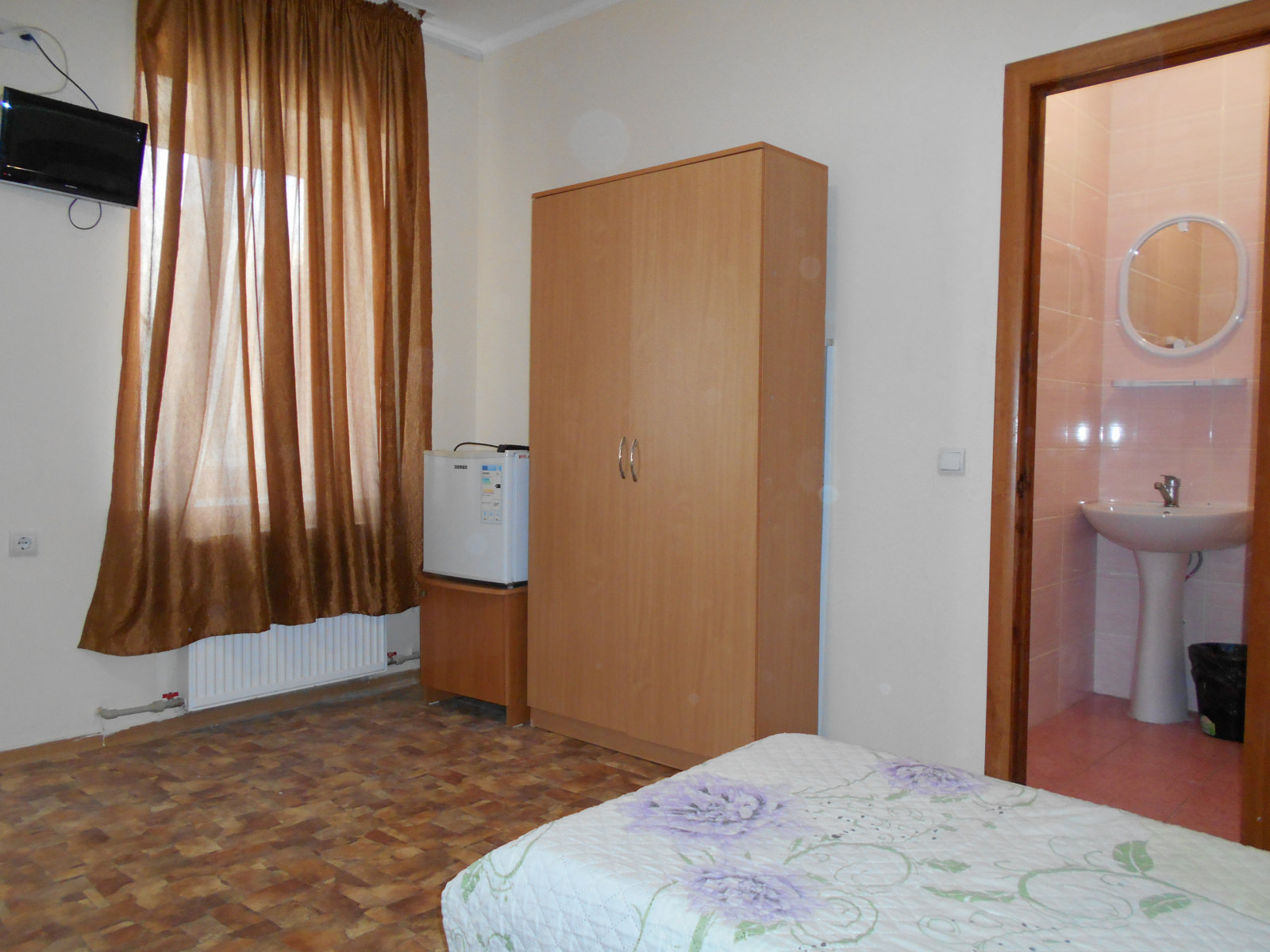 Площадь номера - 20-25 кв.м. 2 осн. места. 1 доп. место. Мебель: вешалка, зеркало, кровати односпальные, прикроватные тумбочки, стол, стулья, шкаф. Оборудование: телевизор, холодильник. Санузел: с душем, туалетные принадлежности. Сервис: смена полотенец, смена постельного белья, уборка номера.